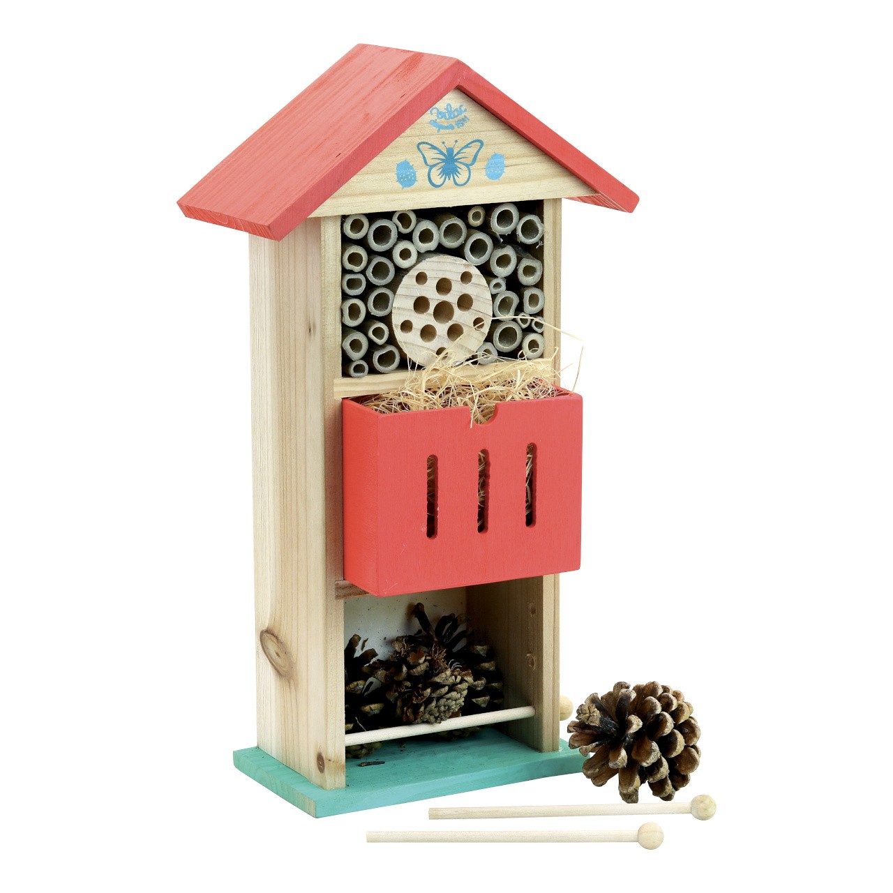 Entomologové pozor! Kdo chce pozorovat malá stvoření, rozhodně potřebujete tento domeček pro hmyz. Hmyzí hotel obsahuje trubičkové otvory, zásuvku na vystýlku a volný prostor třeba pro šišky nebo klacíky. Různé druhy hmyzu si zde vytvoří dokonalý domov. Hlavní vlastnosti: praktická didaktická pomůcka