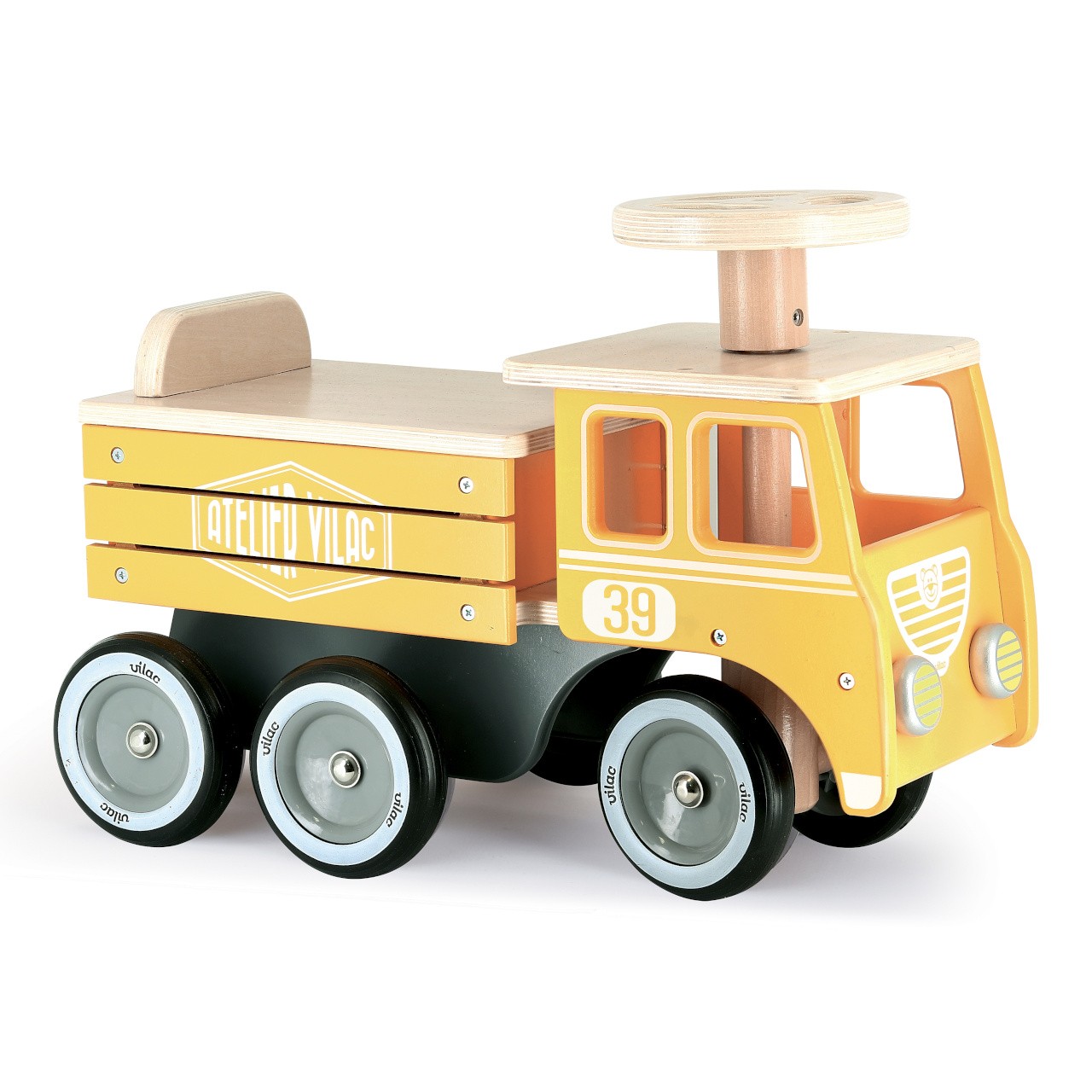 Pány staveniště s velkým a silným náklaďákem! Atraktivní a propracované odrážedlo s praktickým úložným prostorem pod sedadlem, kam lze uschovat oblíbené hračky. Vozítko vyniká výjimečně robustní konstrukcí využívající silnou překližku i díly z masivního dřeva. Úhel otáčení jeho volantu je omezen tak, aby byla zaručena stabilita a nehrozil pád dítěte. Plastová kola jsou opatřena odolnými pneumatikami, které tlumí hluk a zároveň zlepšují jízdní vlastnosti. Bezpečnost odrážedla byla i laboratorně ověřena, Vaši nejmenší tak mohou bez obav vyrazit za dobrodružstvím. Výrobek vyžaduje montáž, dodáváno s obrázkovým návodem k sestavení. Hlavní vlastnosti:úložný prostortichý a kultivovaný chodjedinečný design a zpracovánírobustní a stabilní dřevěná konstrukce
