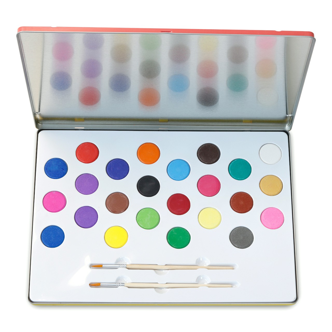 Akvarelové barvy se štětci v plechové krabičce Rozměry: 33x24x2 cm Věk: 3+ Materiál: plast, kov, dřevo Design: Andy Westface Celý popis