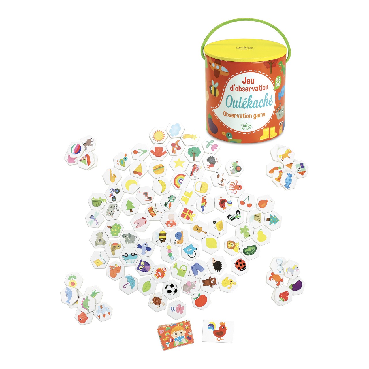 Prověřte postřeh Vašich dětí! Kdo mezi rozloženými dílky dokáže jako první najít obrázek shodný s vyobrazením na kartičce? Hráči přitom musí dát bedlivý pozor, v záplavě obrázků se totiž ukrývají i chytáky! Herní dílky jsou pevné a odolné, vyrobené ze dřeva. Dodáváno v praktickém a atraktivně dekorovaném kbelíku s dřevěným víkem. Hlavní vlastnosti: pro 2–5 hráčů100 herních dílků a 100 kartičekpraktické balení  Dokumentace: návod ke hře Pexeso Outékaché (CZ)návod he hře Pexeso Outékaché (SK)  Zkrácený návod hry:Rozložte všechny herní dílky do středu stolu, obrázkem nahoru. Hráč si vezme kartu z balíčku, ukáže ji všem protihráčům. Hráč, který najde obrázek na stole jako první, si tuto kartu ponechá. Vítězí hráč, který jako první nasbírá 10 karet.
