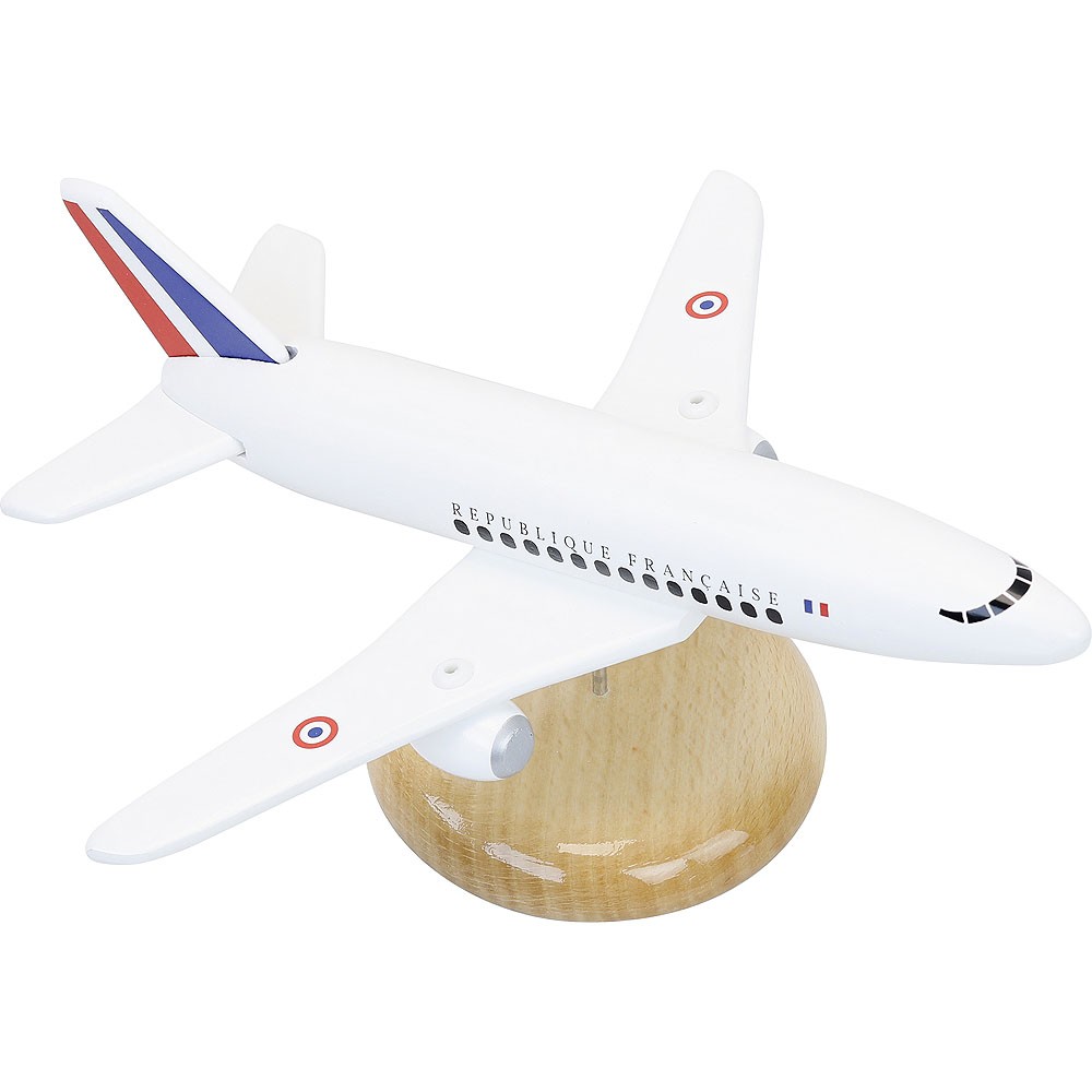 Model oficiálního letadla prezidenta Francie. Tato sběratelská dřevěná hračka je dodávána se stojanem. Vyrobeno ve Francii. Dřevěná hračka ze speciální řady Elysée Présidence de la République, která oslavuje a podporuje francouzký prezidentský palác Palais de l’Élysée, který se nachází v centru Paříže, nedaleko Avenue des Champs-Élysées, po které má Elysejský palác svůj název. Od roku 1873 je sídlem francouzských prezidentů. Prodej každého produktu přispívá k financování renovačních prací v Palais de l'Elysée, přispívá tak k zachování tohoto kulturního a historického dědictví. Hlavní vlastnosti: vyrobeno ve Franciiedice Elysée Présidence de la République