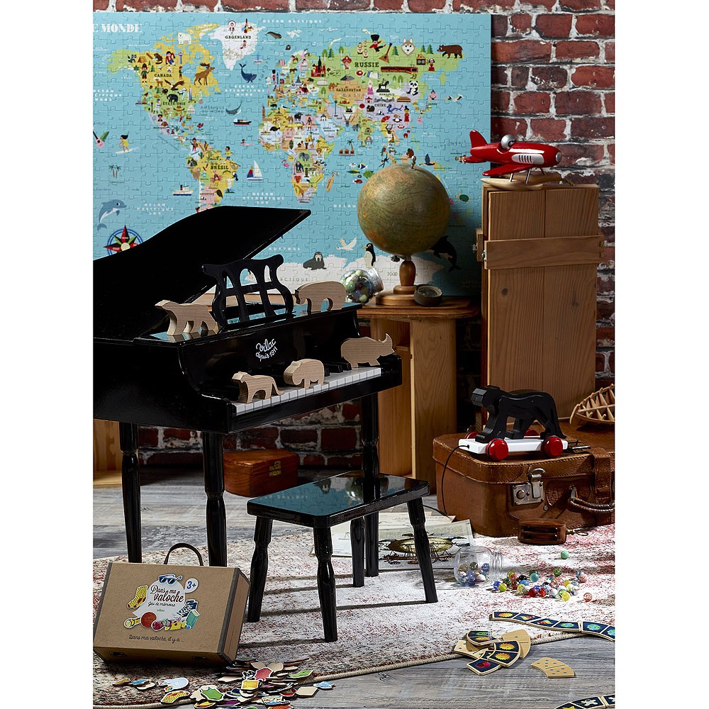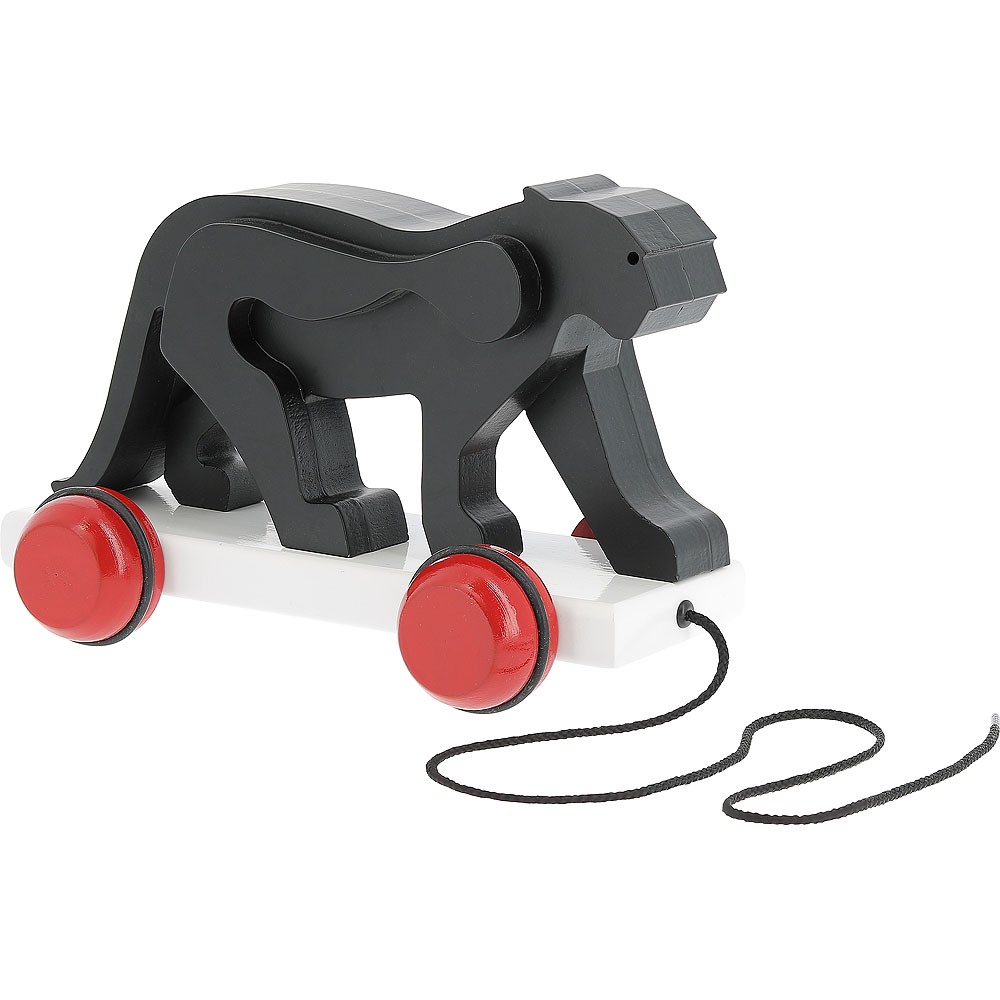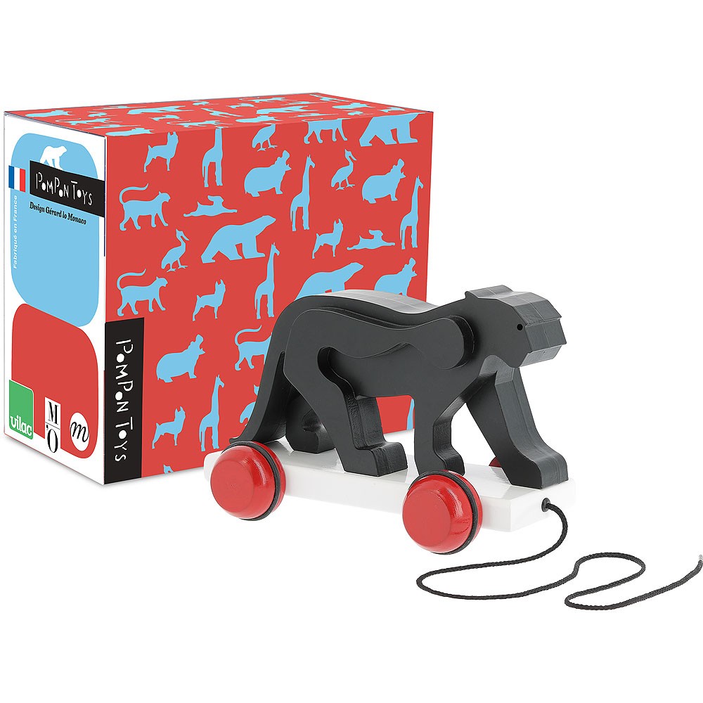Dřevěný tahací panter v designu Francoise Pompona. Hlavní vlastnosti: design Francois Pomponrozvíjí koordinaci pohybů dětí Se svým malým přenosným pracovním stolem se sochař François Pompon (1855–1933) rád procházel po pařížském Jardin des Plantes (veřejný park a botanická zahrada). Tam mohl pozorovat zvířata a vyrábět jejich modely v malém měřítku. Zpět ve svém ateliéru vyřezával medvědy, pantery, ale také psy, kuřata a králíky, zjednodušováním tvarů nacházel podstatu každého zvířete. Před očima návštěvníků Muzea Orsay, kde je uloženo velké množství těchto soch, tak zvířata ožívají! Jeho sochy reinterpretoval umělec Gérard Lo Monaco a ve spolupráci s RMN (sdružení 34 muzeí) a Muzeem Orsay vzdává poctu Pomponovi výrobou této nádherné řady dřevěných hraček.