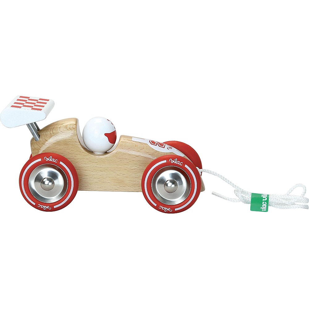 Úvod Pro děti Hračky Tahací hračky Na provázku Vilac Tahací závodní auto přírodní s červeným křídlem