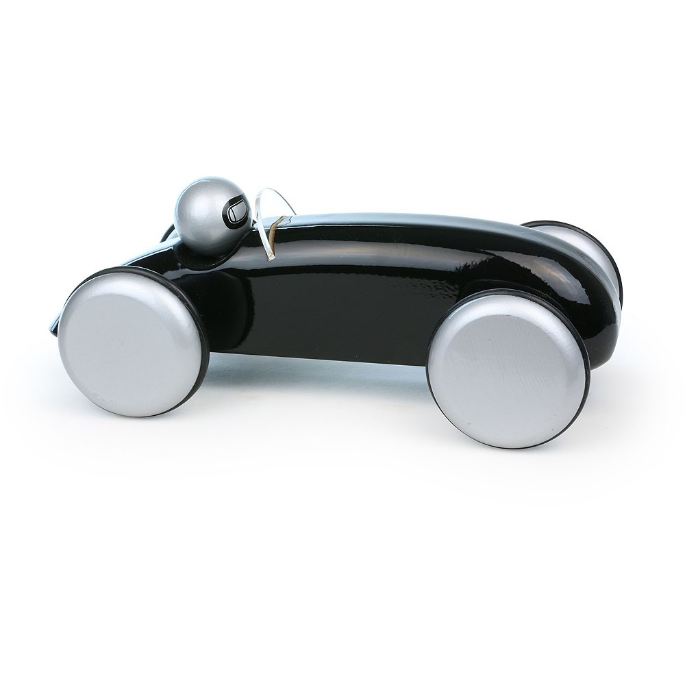 Černé závodní auto vyrobeno z lakovaného dřeva. Je vhodné jak ke hraní tak jako dekorace do pokojů dětí či dospělých. Vyrobeno ve Francii.  Hlavní vlastnosti: vyrobeno ve Francii