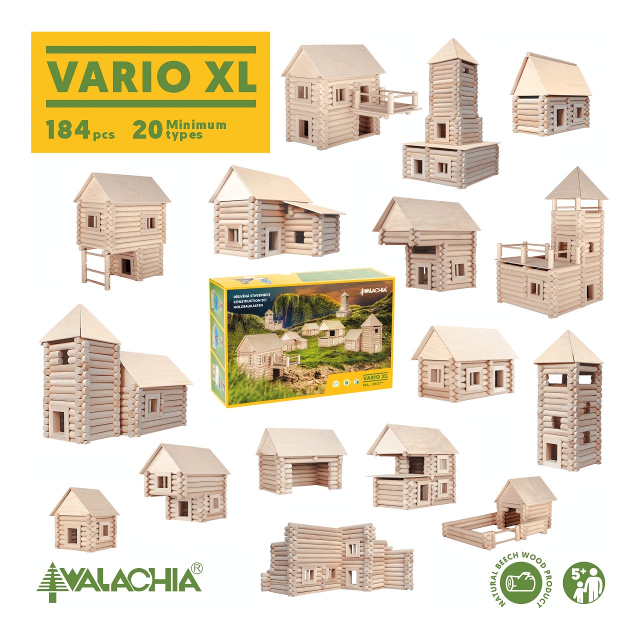 Walachia Dřevěná stavebnice Vario XL 184 dílů