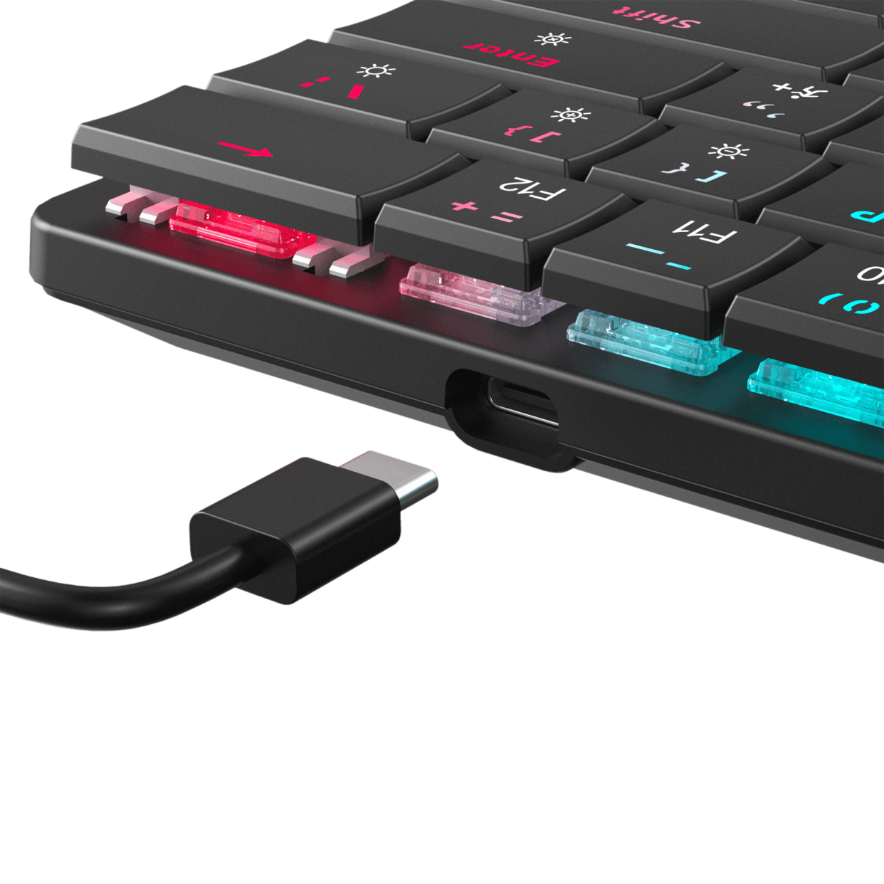 - Kompaktní 61/62 klávesové rozložení – šetří místo a umožňuje snadné přenášení
