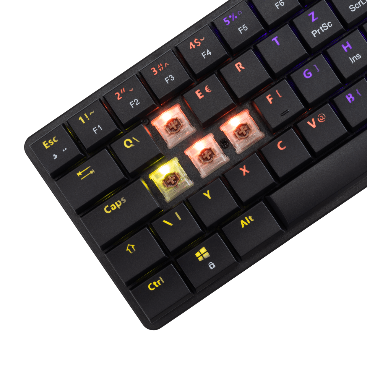 KOMPAKTNÍ DESIGN A PLNÉ ANTI-GHOSTING POKRYTÍMinimalistické 61/62 klávesové rozložení šetří místo na stole a je ideální pro hráče, kteří potřebují více prostoru pro myš.