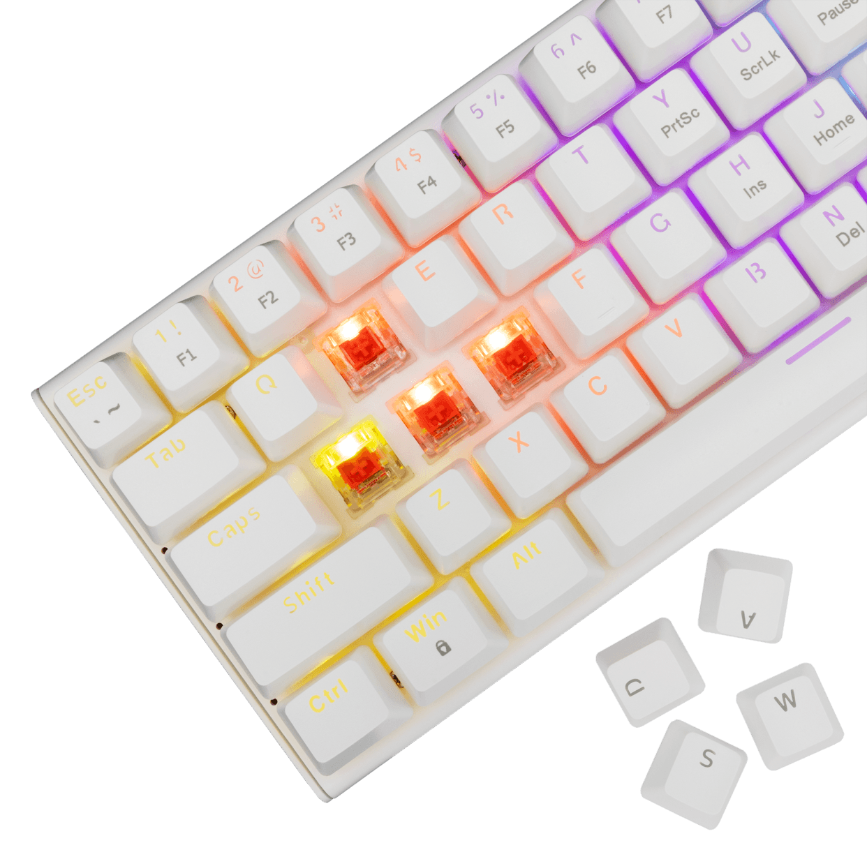 Tato kompaktní klávesnice s 63 klávesami si zachovává oblíbené funkce originálu, včetně mechanických červených spínačů a 17 duhových světelných efektů.