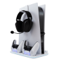 White Shark KIMURA-2 je multifunkční stojan, chladič a nabíjecí stanice pro PS5, který zajišťuje efektivní chlazení, organizaci herních disků a pohodlné nabíjení ovladačů.