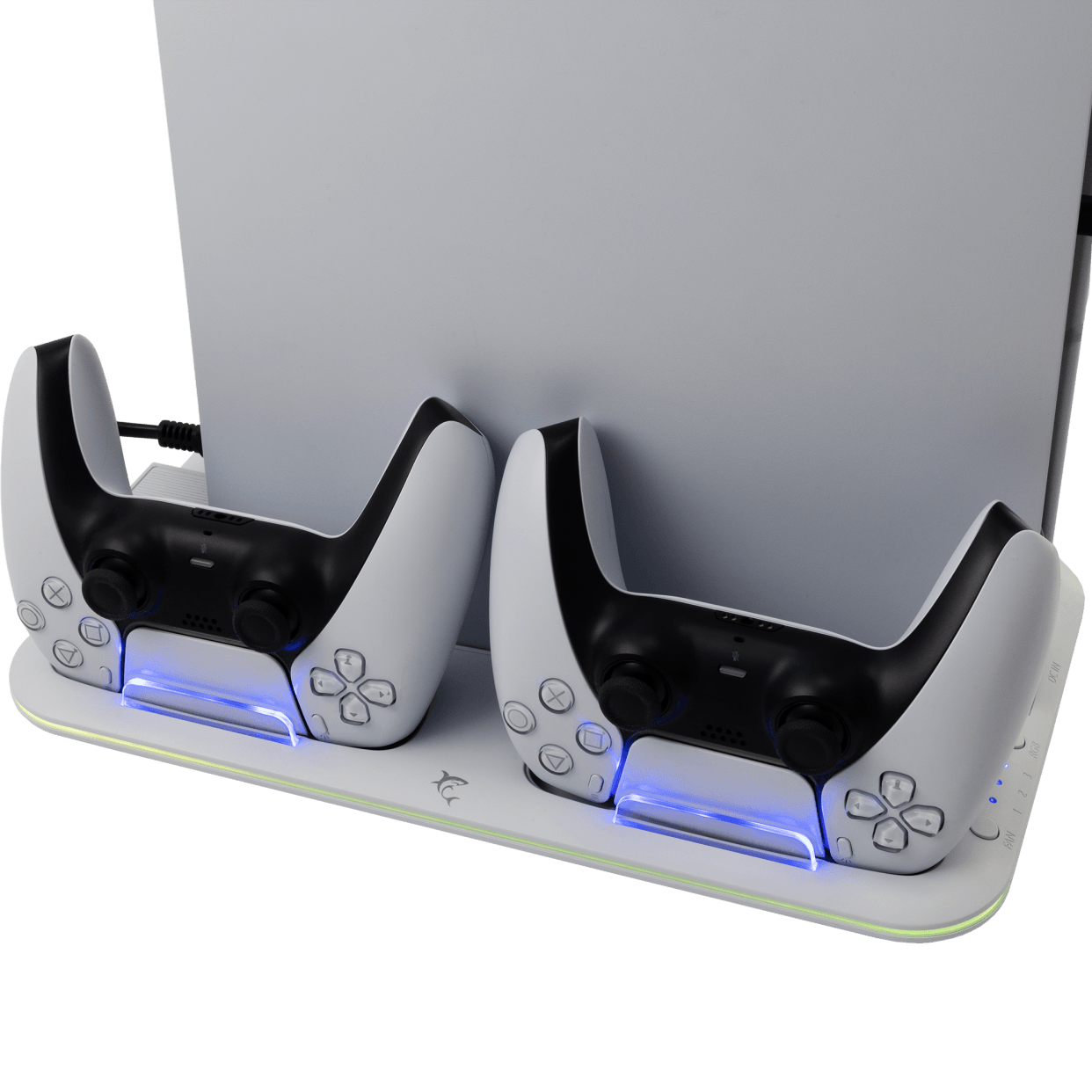 White Shark KIMURA-2 Chladicí podložka/stojan + 2x nabíjecí stanice pro PS5, PS5 Slim, bílá/šedá