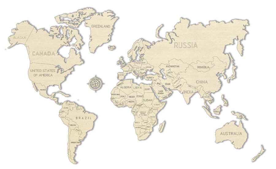 Pro světoběžníky. Skládačka dekorační mapy světa z překližky. Díky materiálu poslouží jako atraktivní nástěnka, na kterou můžete připínat zážitky ze svých cest. Jednotlivé díly i celou skládačku můžete dle libosti barvit, a podtrhnout tak její vzhled, nebo význam jednotlivých částí světa. Dodáváno s oboustrannou lepící páskou.   Hlavní vlastnosti:rozměry 57×38 cm31 precizně vyřezaných dílků