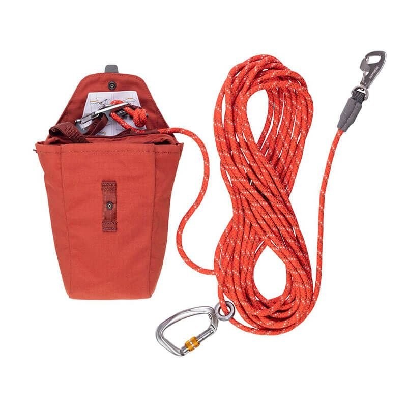 Ruffwear Knot-a-Hitch ™ je kempingový závěsný systém pro psy inspirovaný horolezeckými pomůckami. Tento komplexní a intuitivní systém, který je navržen speciálně na kempování, umožňuje psům pohybovat se ve vašem táboře a zároveň zůstat na vodítku. Knot-a-Hitch obsahuje silné kernmantle lano, které může být natažené mezi dvěma stromy nebo připevněné ke sloupu pomocí snadno použitelného napínacího systému navrženého společností Ruffwear. Psi mohou prozkoumat své nové prostředí, zatímco vy připravíte váš tábor- postavíte stany, připravíte ohniště či navaříte večeři.
