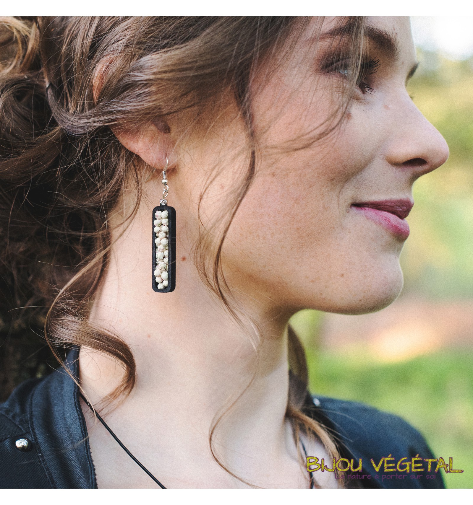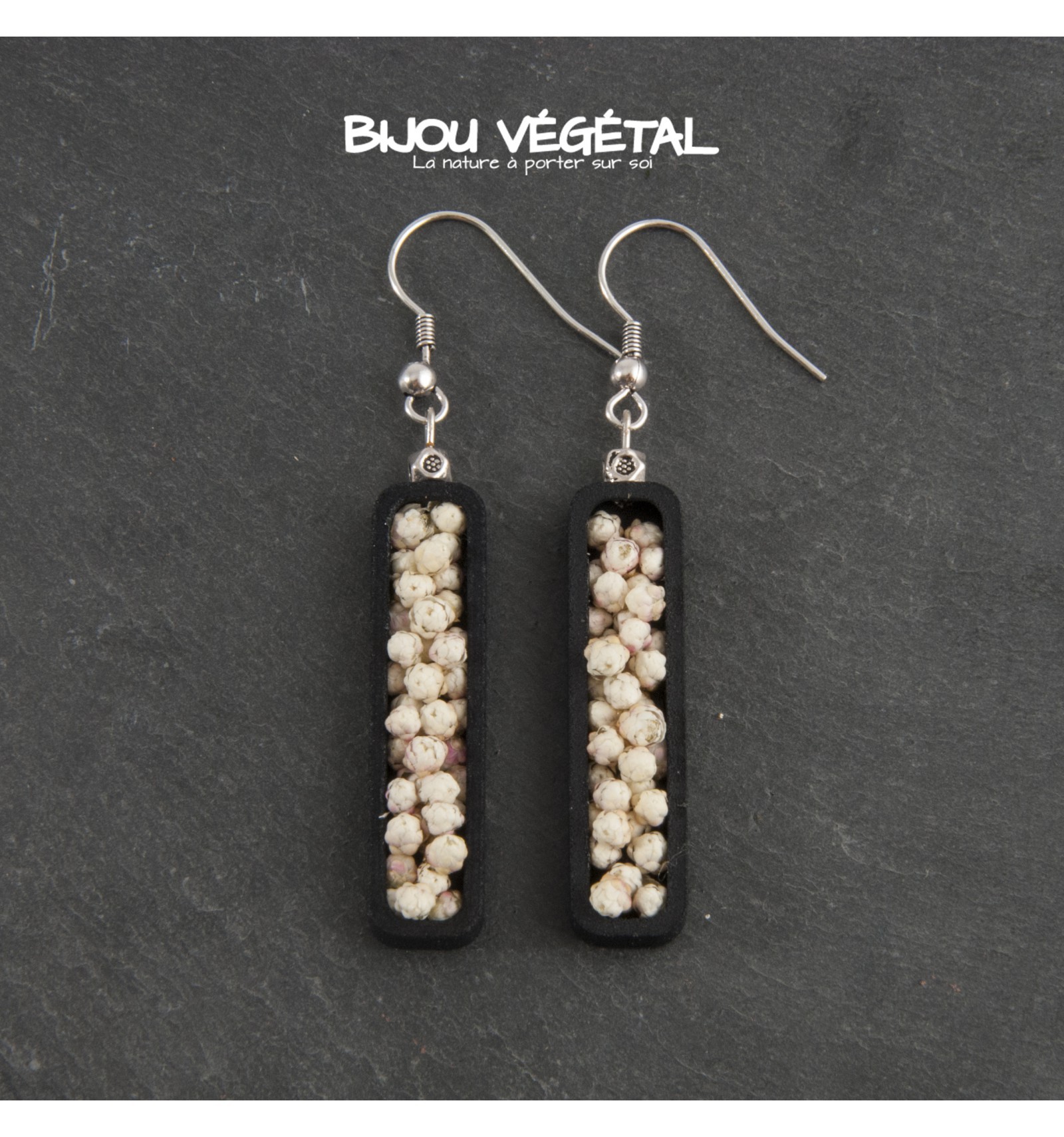 Živé šperky - Náušnice Jardiniere černé s trvalými bílými květy