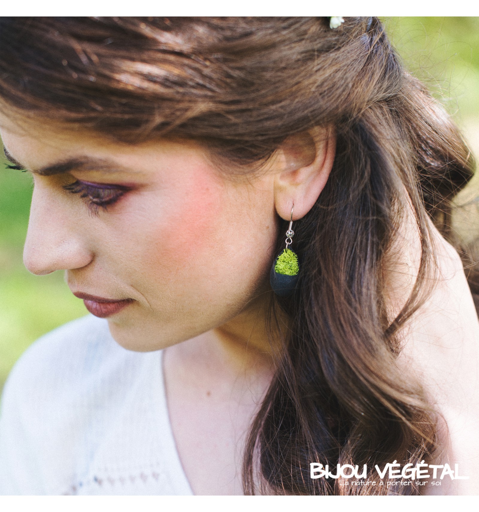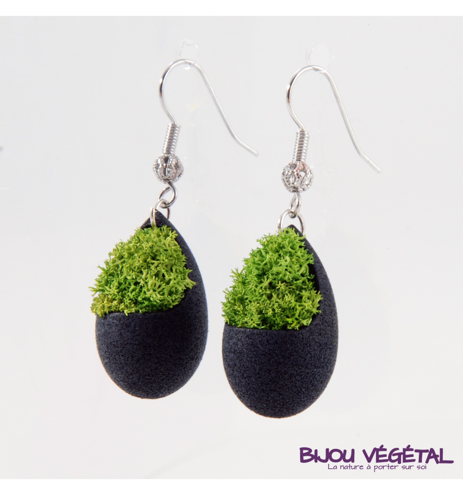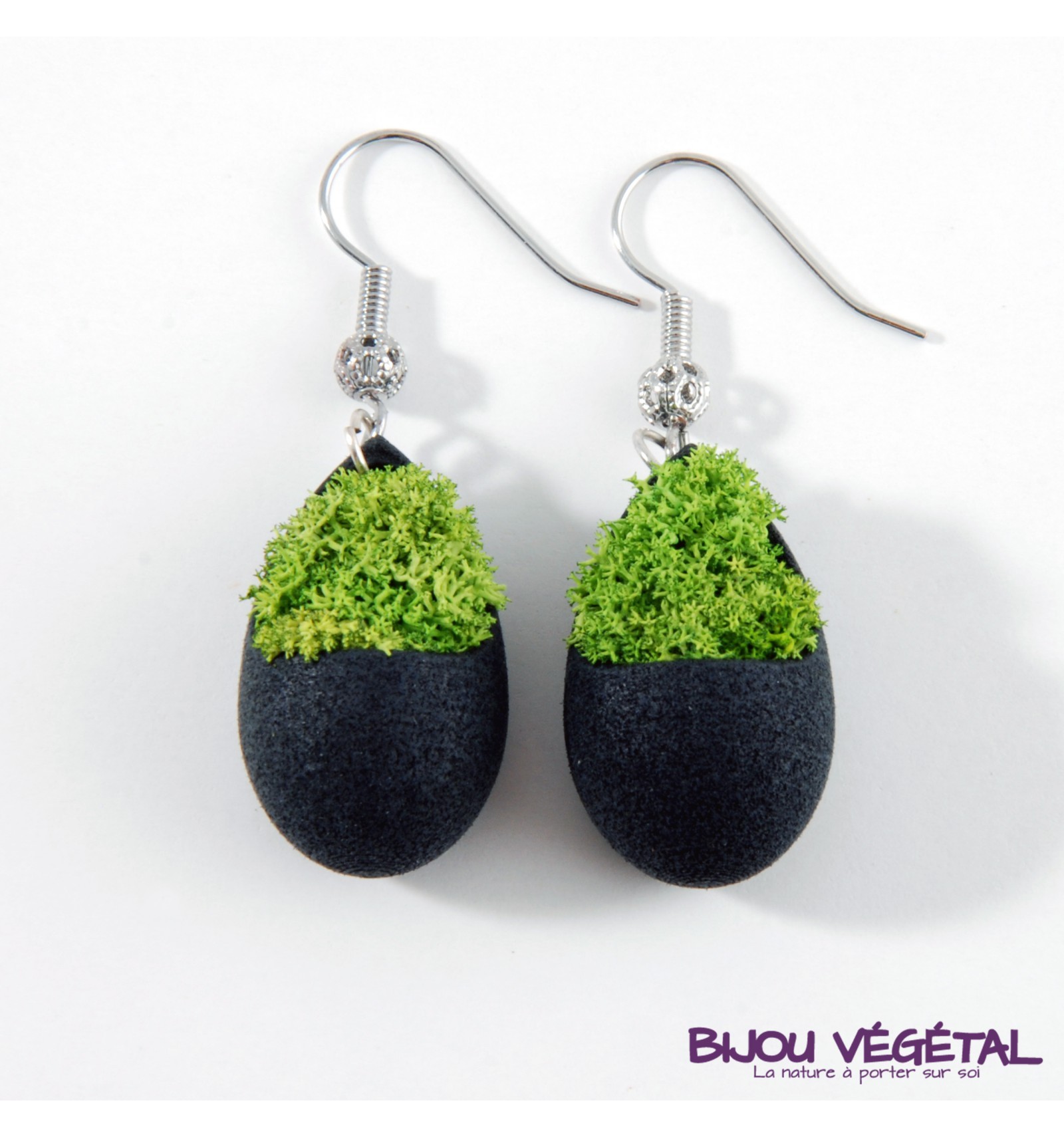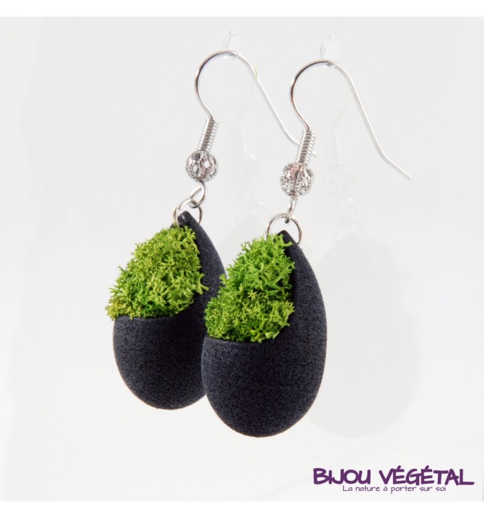 Živé šperky - Náušnice Slza černé s lišejníkem