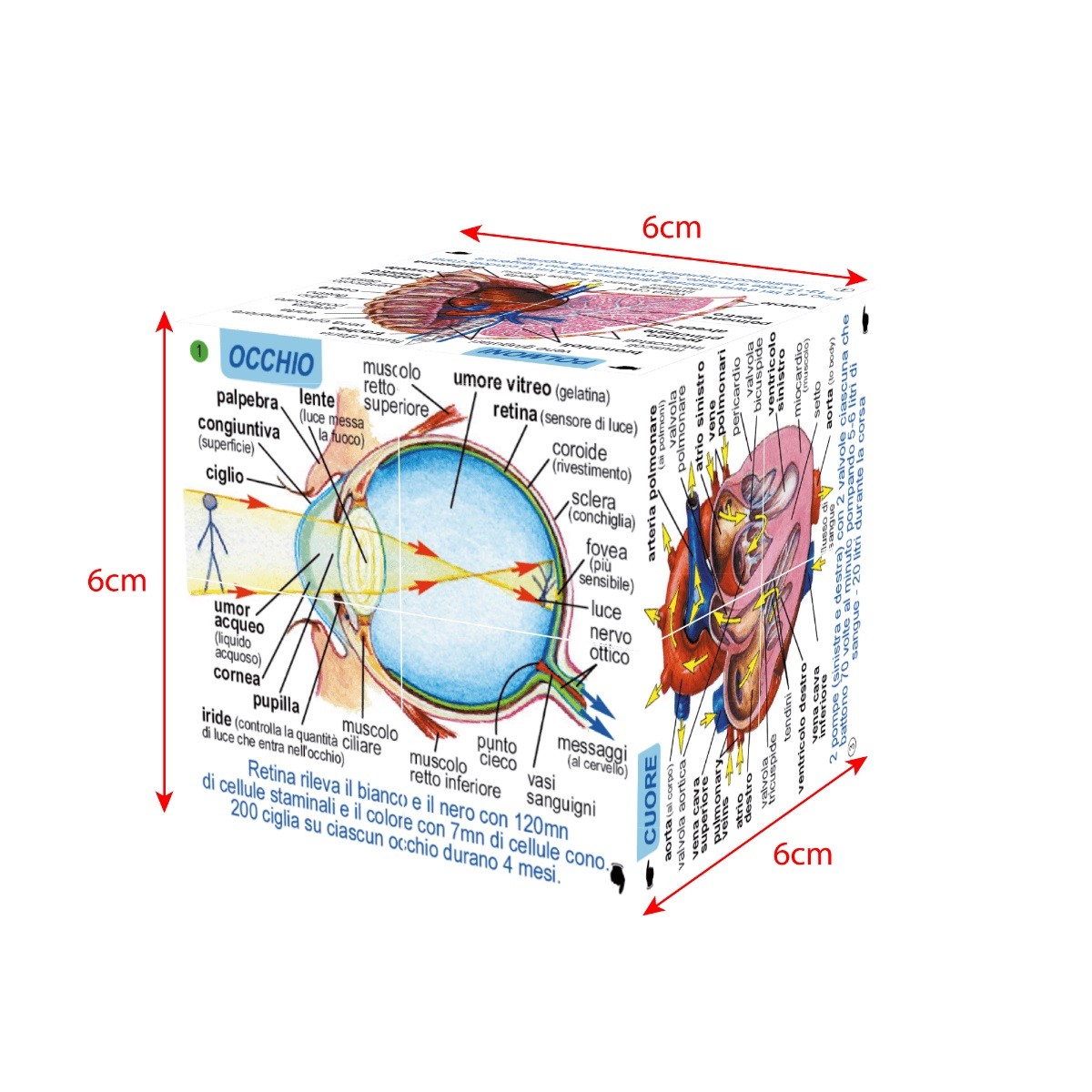 Didaktická kostka se skládá ve všech směrech a v mnoha kombinacích. Popisky na kostce jsou v angličtině. Věděli jste, že k zamračení je potřeba 40 svalů, ale k úsměvu jen 15? V každé kombinaci složení najdou děti užitečné informace k orgánům a jednotlivým soustavám lidského těla. Skvělé pro použití ve školách, doma i na cestách. Splňuje aktuální evropské bezpečnostní normy.  Hlavní vlastnosti: seznamte se s lidským tělem zajímavou formoudodává se ve formátu zábavné kostky